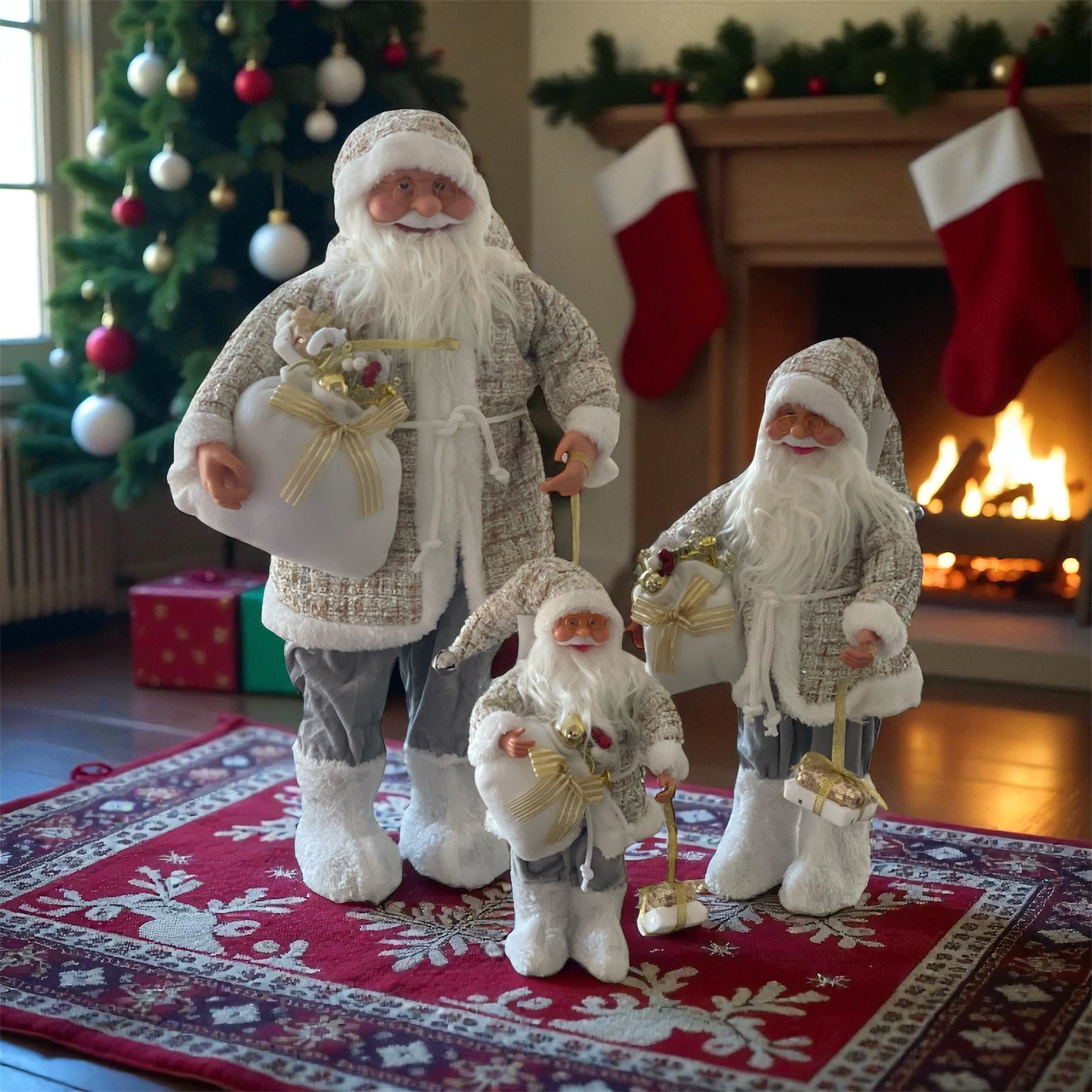 Φέρτε την απόλυτη χριστουγεννιάτικη ζεστασιά στο σπίτι σας με αυτό το υπέροχο σετ τριών Αγιοβασίληδων σε διαφορετικά μεγέθη. Η premium εμφάνιση, οι γήινες αποχρώσεις και οι χρυσές λεπτομέρειες δημιουργούν ένα κομψό και αρμονικό σύνολο που ταιριάζει άψογα σε κάθε εορταστικό σκηνικό.